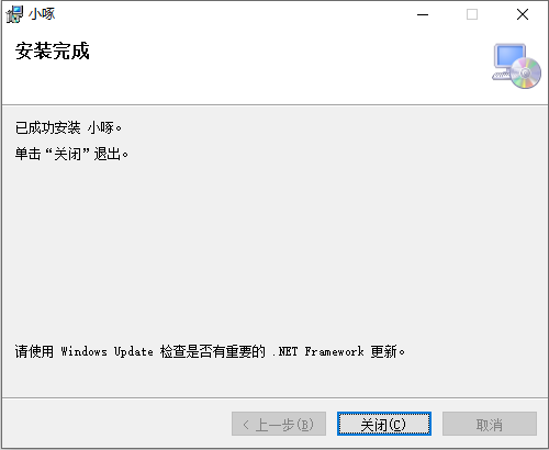 5、點擊“關(guān)閉”,“小啄”安裝完成,如下圖所示。