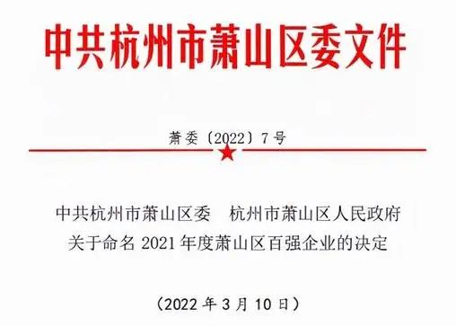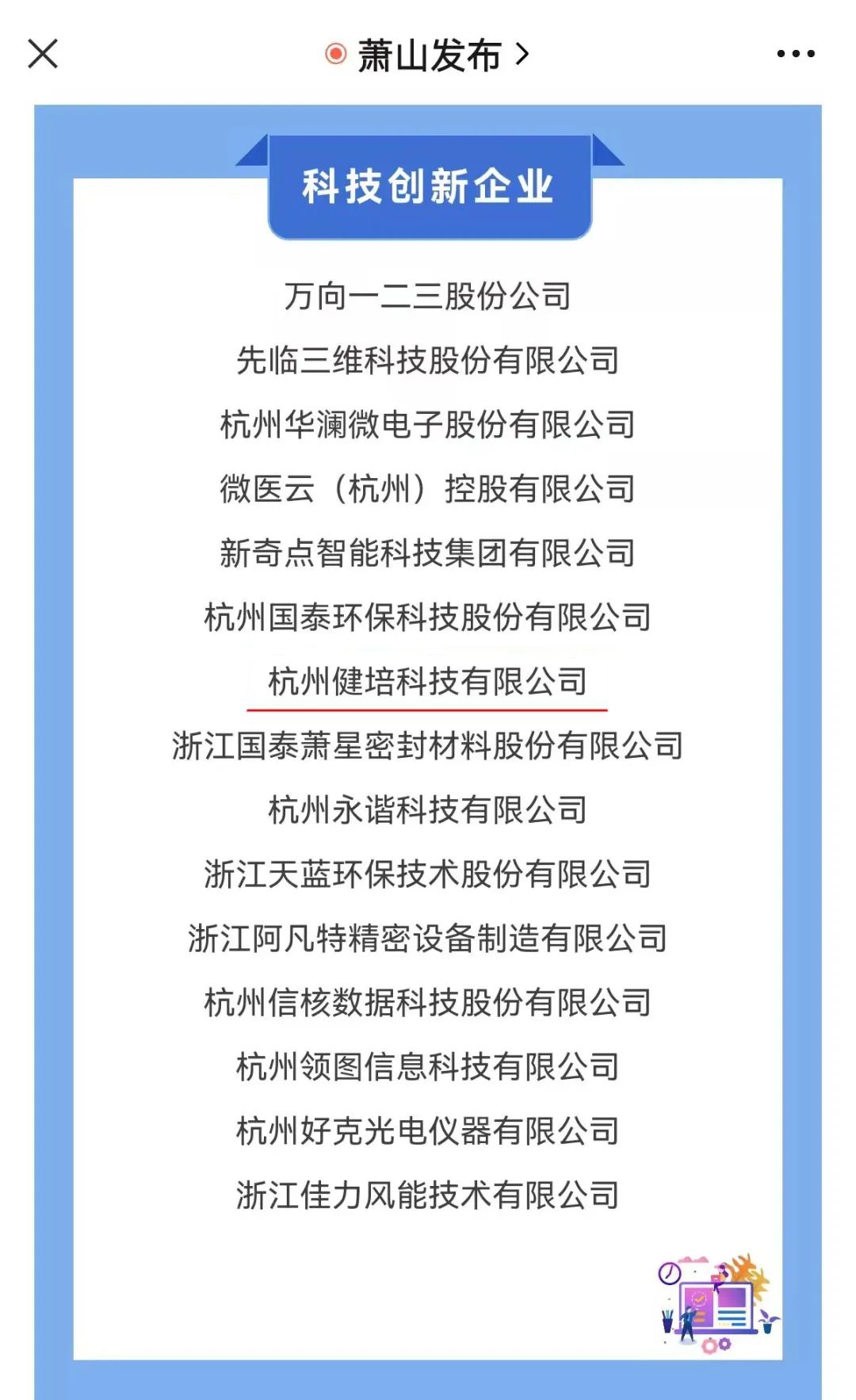 喜訊:健培科技成功入圍“蕭山區(qū)百強企業(yè)”